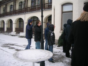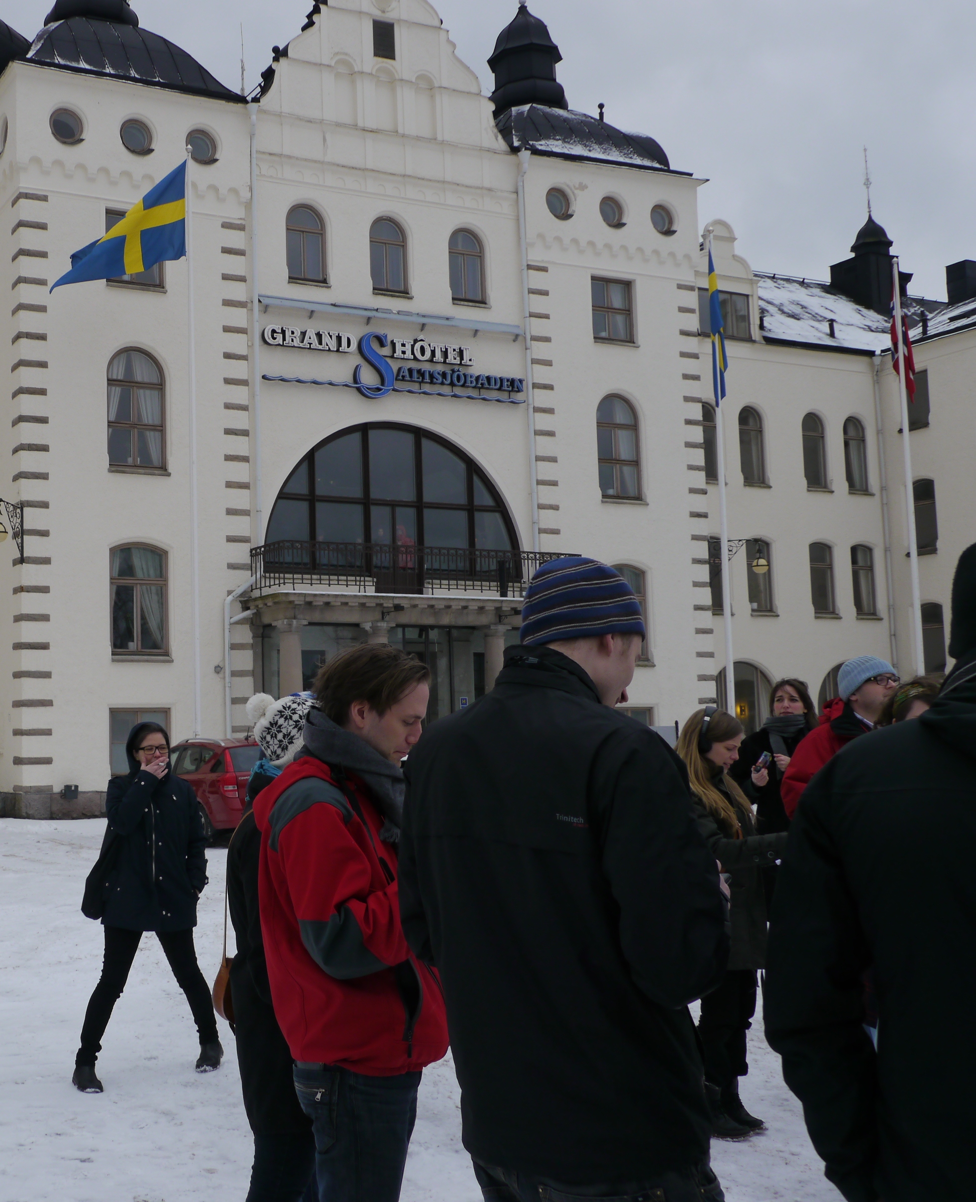 Vi steg av bussen vid Grand Hotel i Saltsjöbaden.
