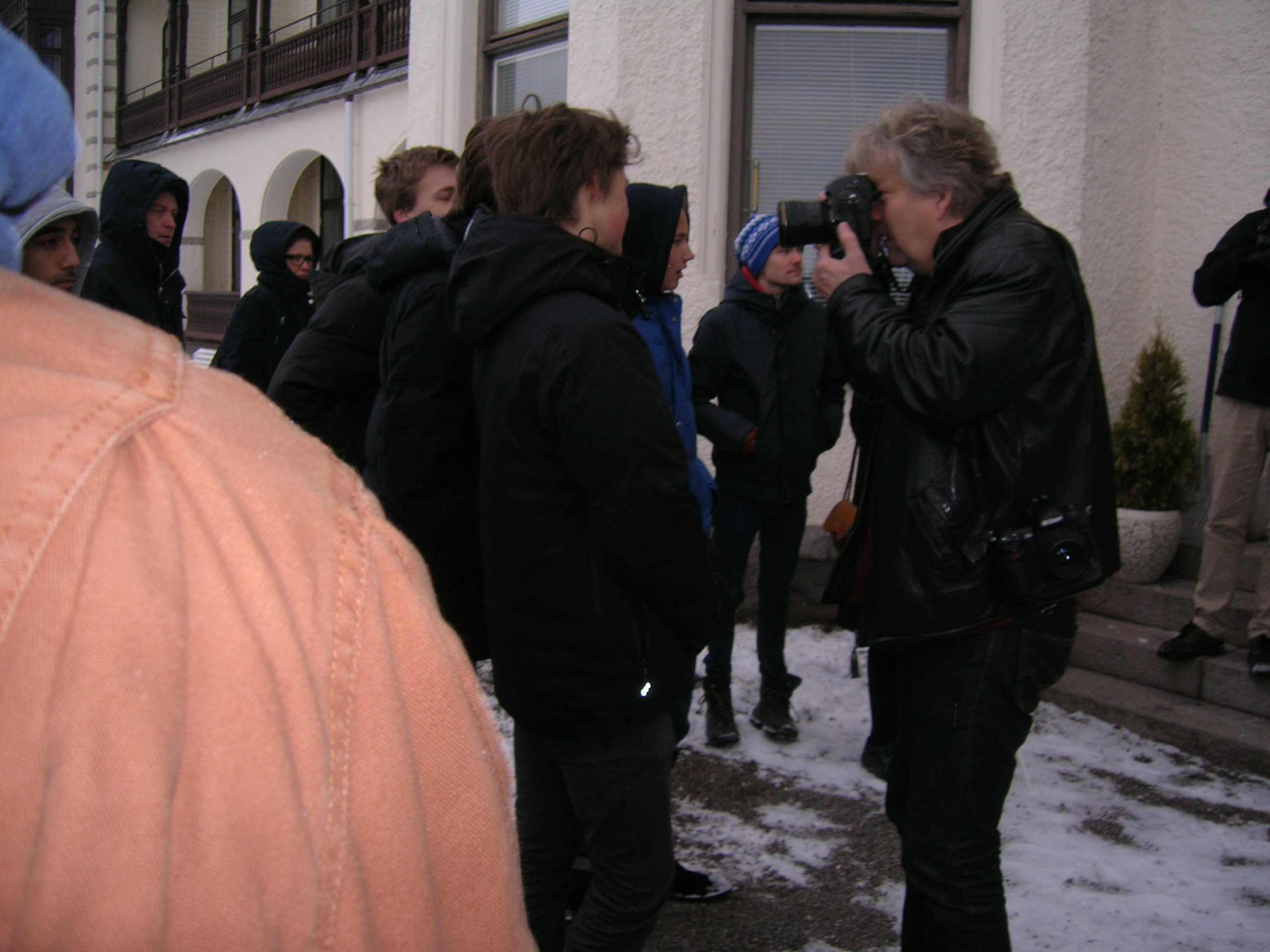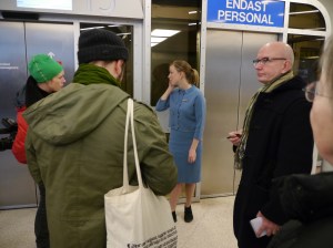 Fast de unga Saltsjöbadsbor som inväntat vår ankomst, måste rapportera vidare. ”Nu är de här! Det är jättemycket folk!” Äntligen händer det nåt i trista Saltis.