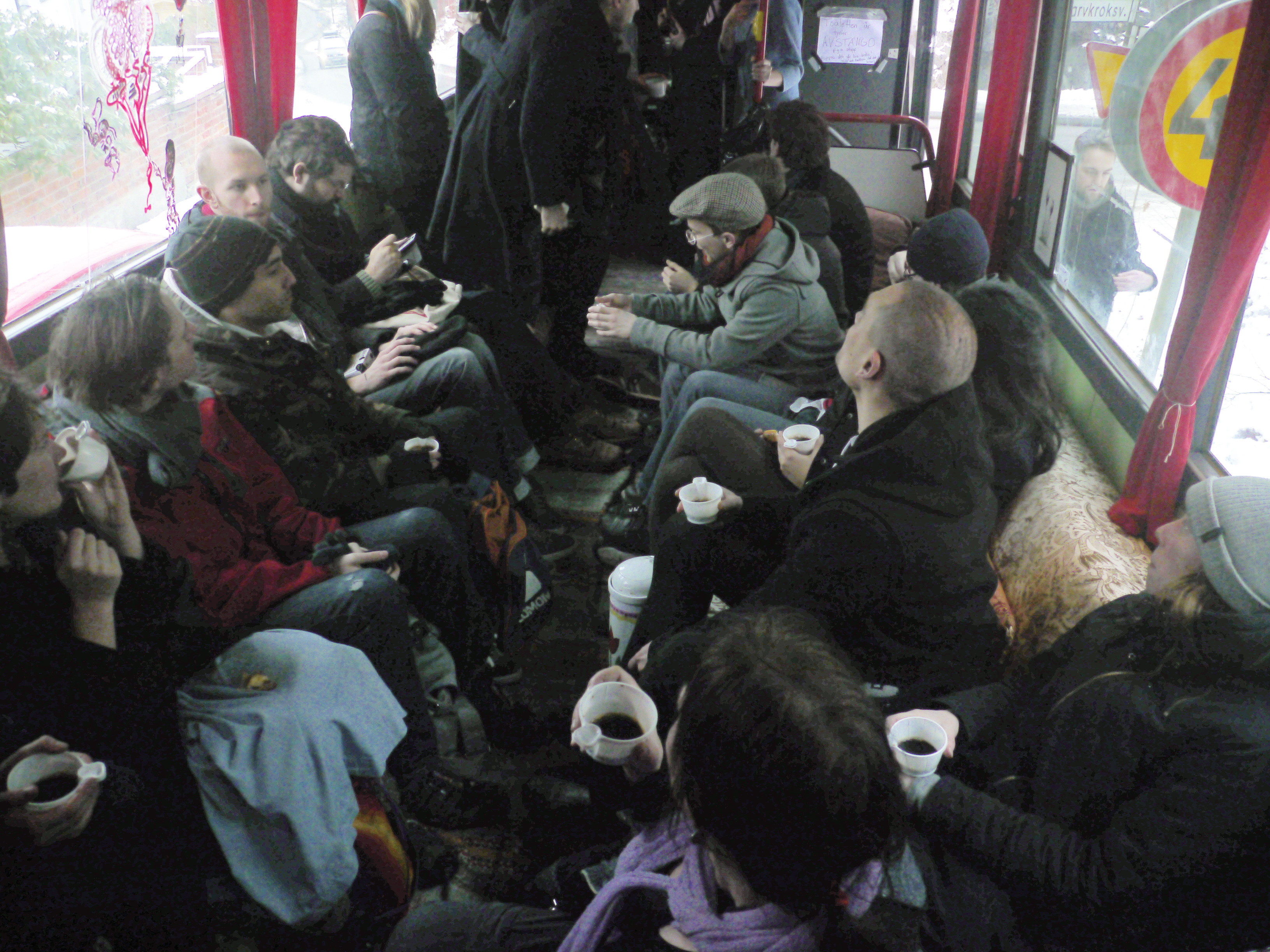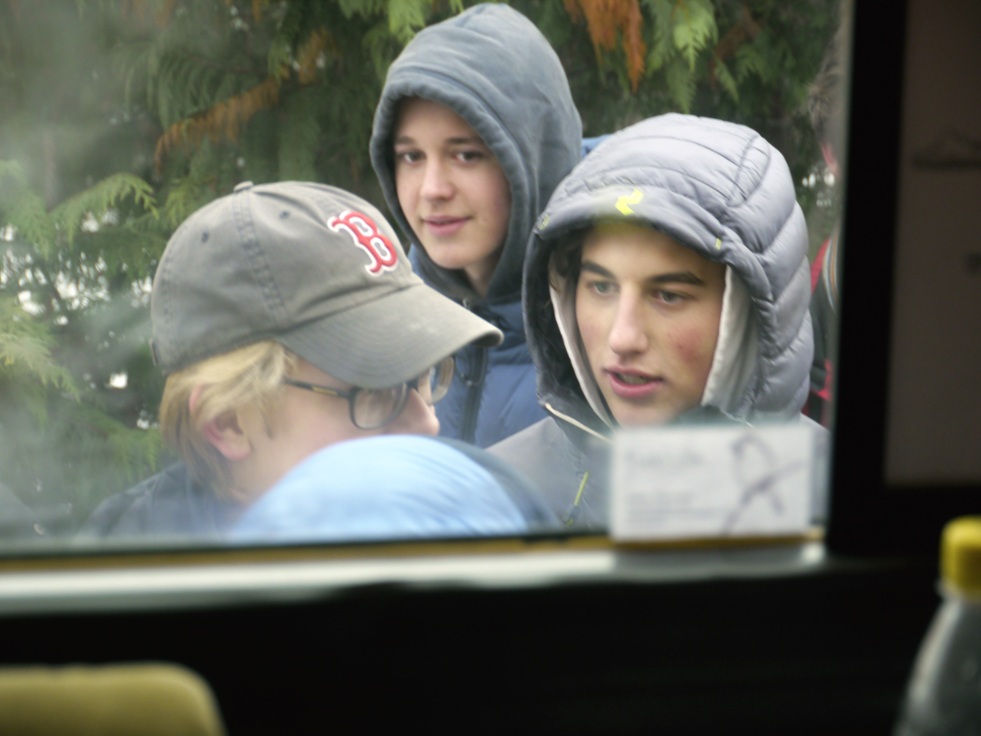 När bussen vände hemåt kastades det ägg på bussfönstren. (Lite senare var det en bil som ställde sig ivägen för bussen på en smal väg. Men den gav sig iväg igen när några steg ur bussen.)