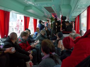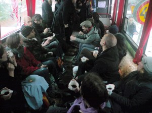 Efter rundvandringen blev det kaffe och frågesport á la tipsrunda i bussen. Jag och Raul hade bara ett fel i frågesporten. Vi missade en fråga om tv-serien Solsidan, som vi aldrig sett. Tycker vi borde fått extrapoäng för det. Killen som vann och fick en flaska oäkta champagne, visade sig vara nykterist. Men man kan ju alltid vaska.