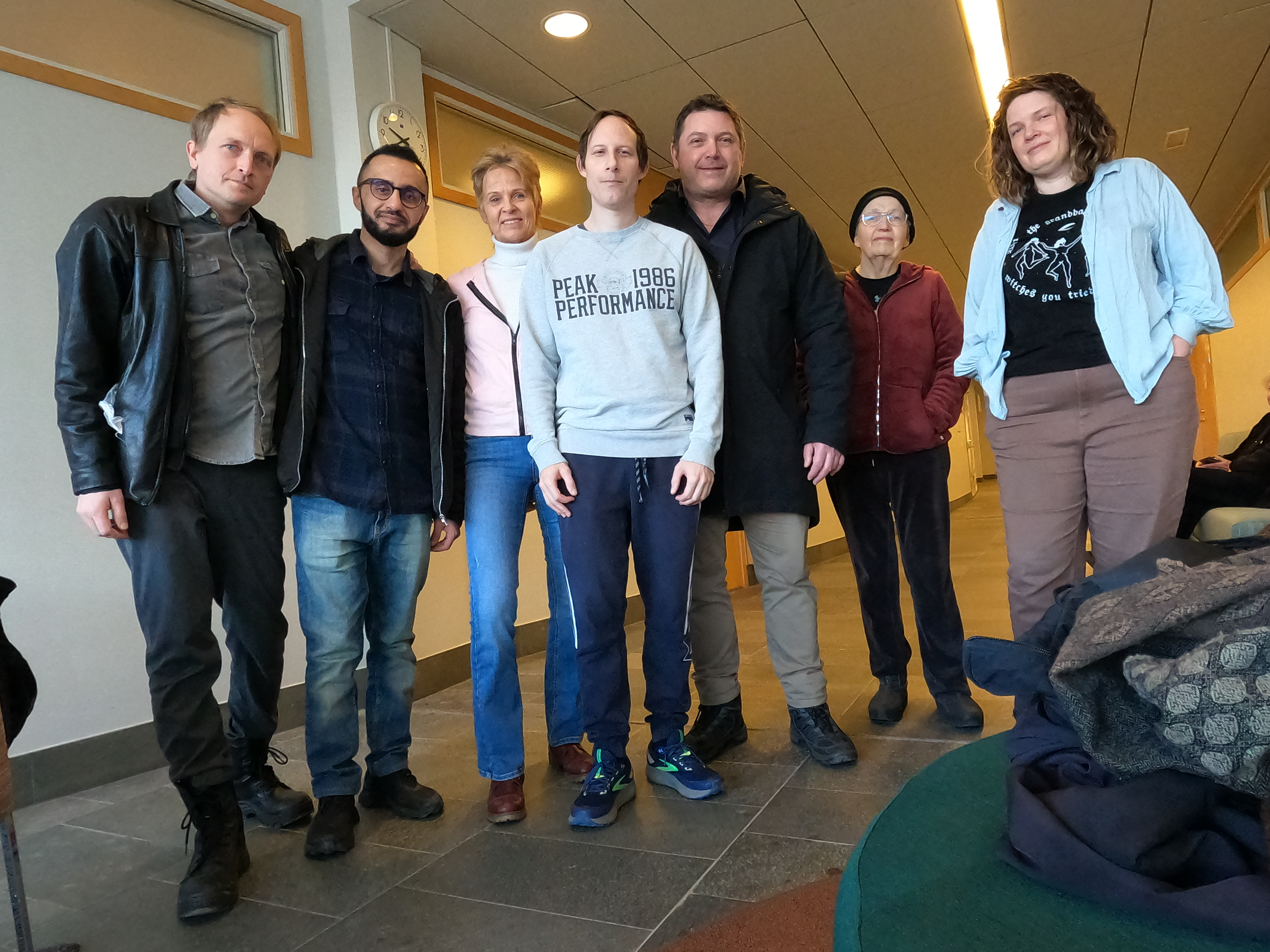Vad som hänt sen dess är bland annat att förvaltningsrätten i Stockholm har behandlat skyddsombudens överklagande av att Arbetsmiljöverket hävde deras skyddstopp mot ensamarbete på pendeln. Den rättegången skedde bakom stängda dörrar av någon anledning. På bilden nedan ses några lokförare och tågvärdar (och jag) som inte fick komma in och lyssna. Domen faller om tre veckor.