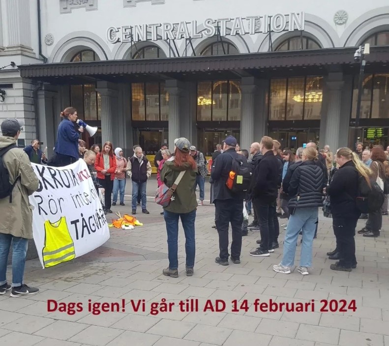 Men när Arbetsdomstolen den 14-15/2 ska lyssna på alla pläderingar och vittnesmål för att sen kunna avgöra om MTR verkligen ska få skadestånd av de modiga lokförarna som visselblås-strejkade i april 2023 – då får alla sitta med! (Om vi får plats). På onsdag morgon kan vi också följa med på Demonstrationståg till Arbetsdomstolen som #rörintemintågvärd anordnar. Det är en bra sak att göra på Alla hjärtans dag. Samling 7.30 på centralplan utanför Stockholms Centralstation!