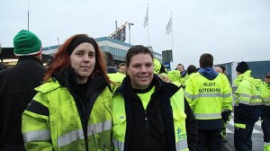 Jag vill gärna överlämna en bild som julklapp till Arvet: Sex hamnarbetare sluter upp och visar solidaritet vid sjuksköterskestudenternas ”Inte under 25000”-manifestation den 24 april 2013. Plats: Slussen i Stockholm.